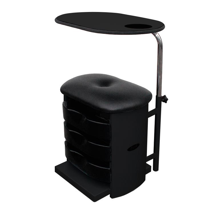 Mesa de apoyo amplia, regulable en altura y con movimiento en ambas direcciones para mayor comodidad.